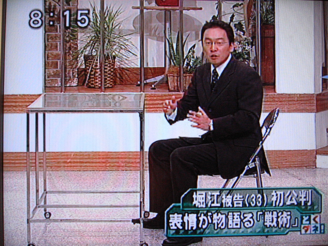 堀江氏の初公判の態度をわざわざ机を用意してまで熱演する必要なんてあるんでしょうか。肘をついたとか、口を尖がらせた。なんて情報を入れて視聴者の心象を悪くするような行為。また、堀江は悪人であって欲しいと願う方々の欲望を満たすための報道。もう少し中立的に出来ないものでしょうかね。