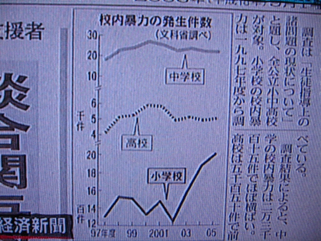朝日のグラフでは近年増加しているように見えますが、これは苛めなどの問題に本腰を入れるようになってきたため計上される数が増加しているという事もありえるでしょう。今までは小学生のやることだし・・・。で片付けていたのが、そうはいかなくなった。