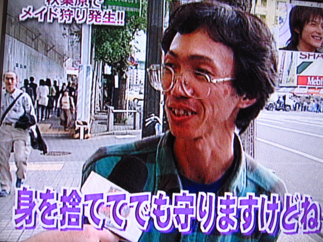 仕込みではないとしたら、必死で探してきたんでしょうね。アキバには私のように現在のオタとアキバを憂いている者も居れば、そんなものどこ吹く風の人間もいますからね。探せば面白いことを言ってくれる人も居るのかもしれません。テレビ局が台本を用意してそれに沿って街で捕まえたオタっぽい人間に喋らせている可能性もゼロではありませんが。