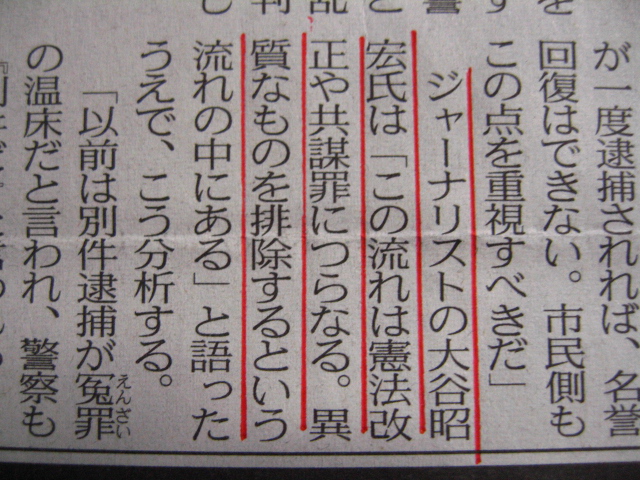 微罪逮捕は憲法改正や共謀罪を成立させるための地ならしで、異質なものを排除しようとする流れの中にある。だから、国民も弁護士もマスコミも許してはならない。
