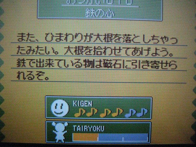 障害物にぶつかれば引き返し、ボールや食べ物といったさまざまなギミックを発見すると、その時の機嫌に応じたアクションを起こします。プレイヤーはゴール地点までの道筋を前以て作成し、ひまわりをスタートさせ、ゴールに導く。与えられたアイテムをステージに配置し、クリアを目指します。失敗してはステージをアイテムを使って再構成し、スタートさせて…を繰り返すゲームで、ほんの小さな(数ドットの)差で結果が大きく変わるシビアさと、発想力が問われる難関ゲームソフトです。