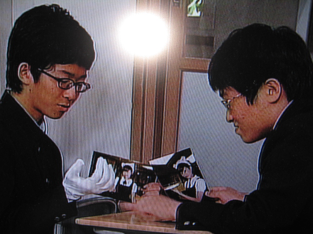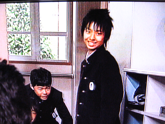 劇中のひとコマ。メイド喫茶でメイドさんと握手してきた男子二人組み。この二人はこの後、徹底的に侮辱されます。理由はオタクでキモイから。