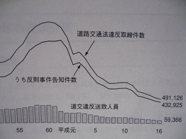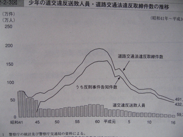このグラフは、少年の道交違反送致人員・道路交通法違反取締件数の推移と銘打たれたグラフです。このグラフを見て何を感じますか?まさか若者が事故を増やしているなどと感じませんよね?