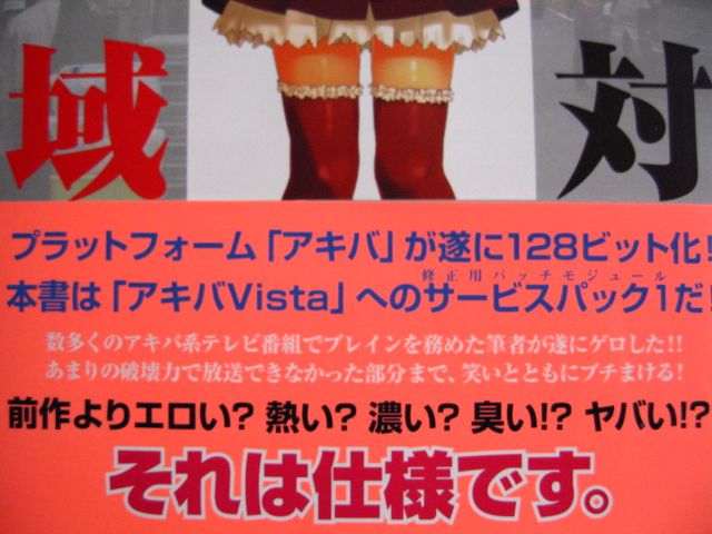 絶対領域についての解説とエロかったりってのが、仕様である事を書いてあります。また、中ではブックオフに売り飛ばすと本が爆発する旨も書かれております。