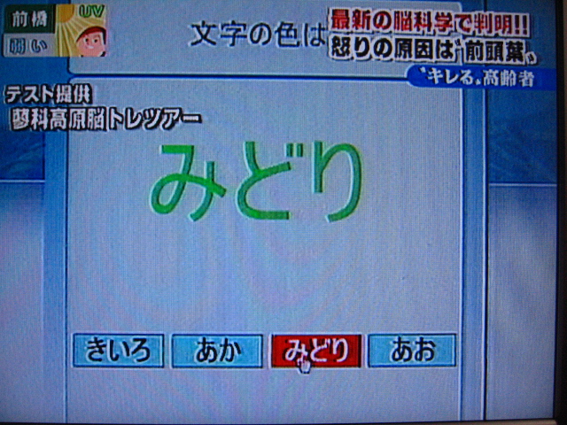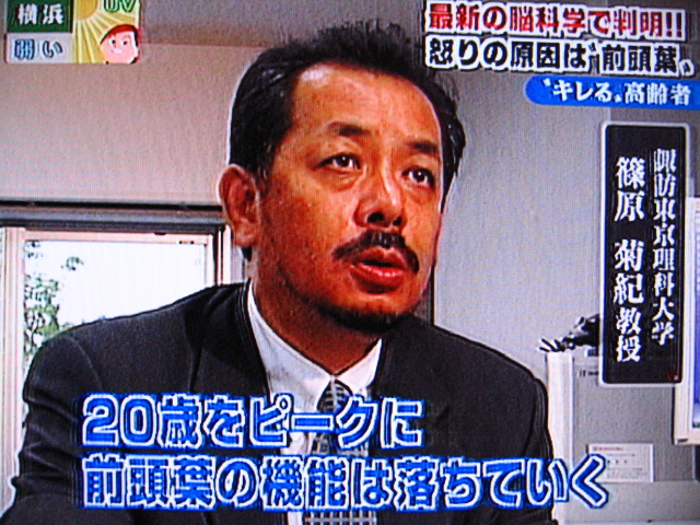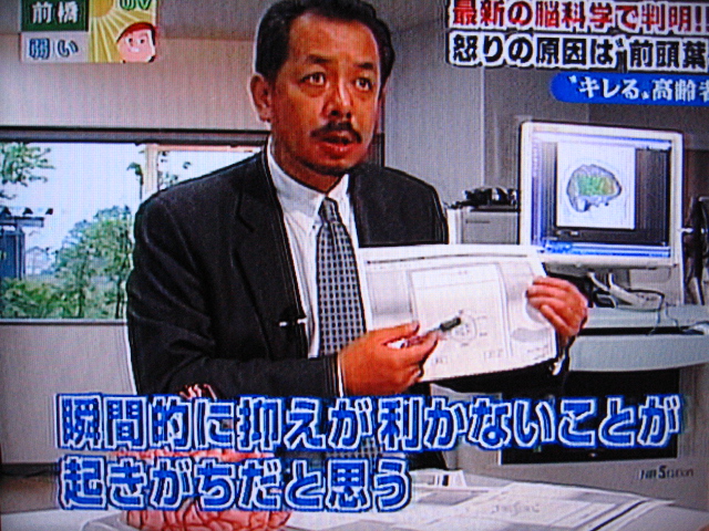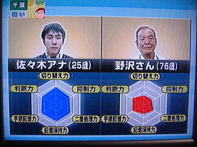 で、これが脳の力を測定するテストだそうです。右が結果ですね。年を取れば当然頭の回転が悪くなるのは経験的に分かっています。(事実かどうかは別問題)しかし、頭が鈍ればキレ易くなるとも限りません。それは、脳の老化と共に身体的にも老化が進行し、キレる活力が失われる可能性があるからです。