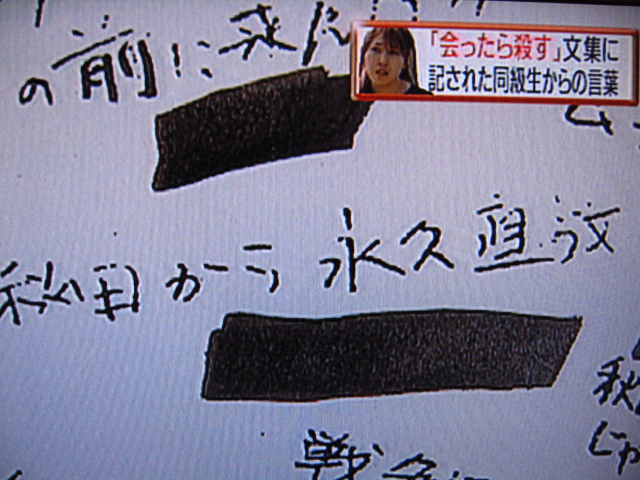 こんなアンケートを創り、文集に載せるってのはあまりにもですよ?黒塗りなのは書いた人の名前でしょうか?完全な侮辱ですよね。容疑者相手ならこんな文集を引っ張り出して来て叩いても良いという論理なんでしょうかね。